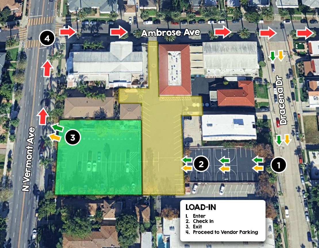 Finally, make a right turn into 1900 N Vermont Ave (Masonic Lodge) for vendor parking.